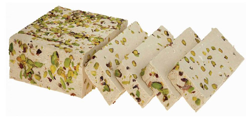 - Ингредиенты кунжутная паста, фисташки, сахар, вода, эмульгатор: моно- и диглицеридные жиры; экстракт из корней мыльнянки, регулятор кислотности: лимонная кислота; ароматизатор идентичный натуральному: ванилин.
