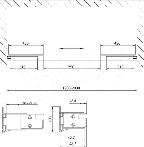 Раздвижные двери перемещаются на роликах вдоль фиксированной части, открываясь по принципу шкафа купе.