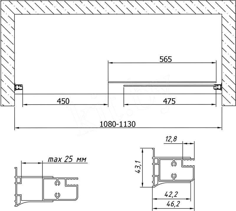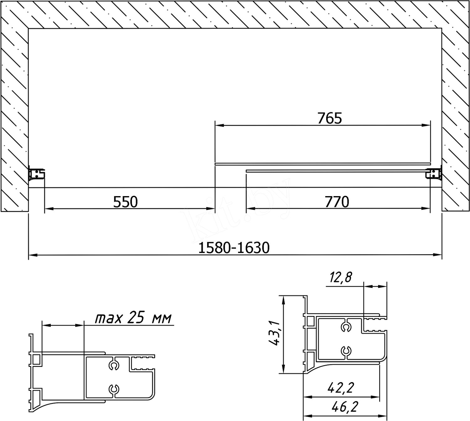 Раздвижные двери перемещаются на роликах вдоль фиксированной части, открываясь по принципу шкафа купе.