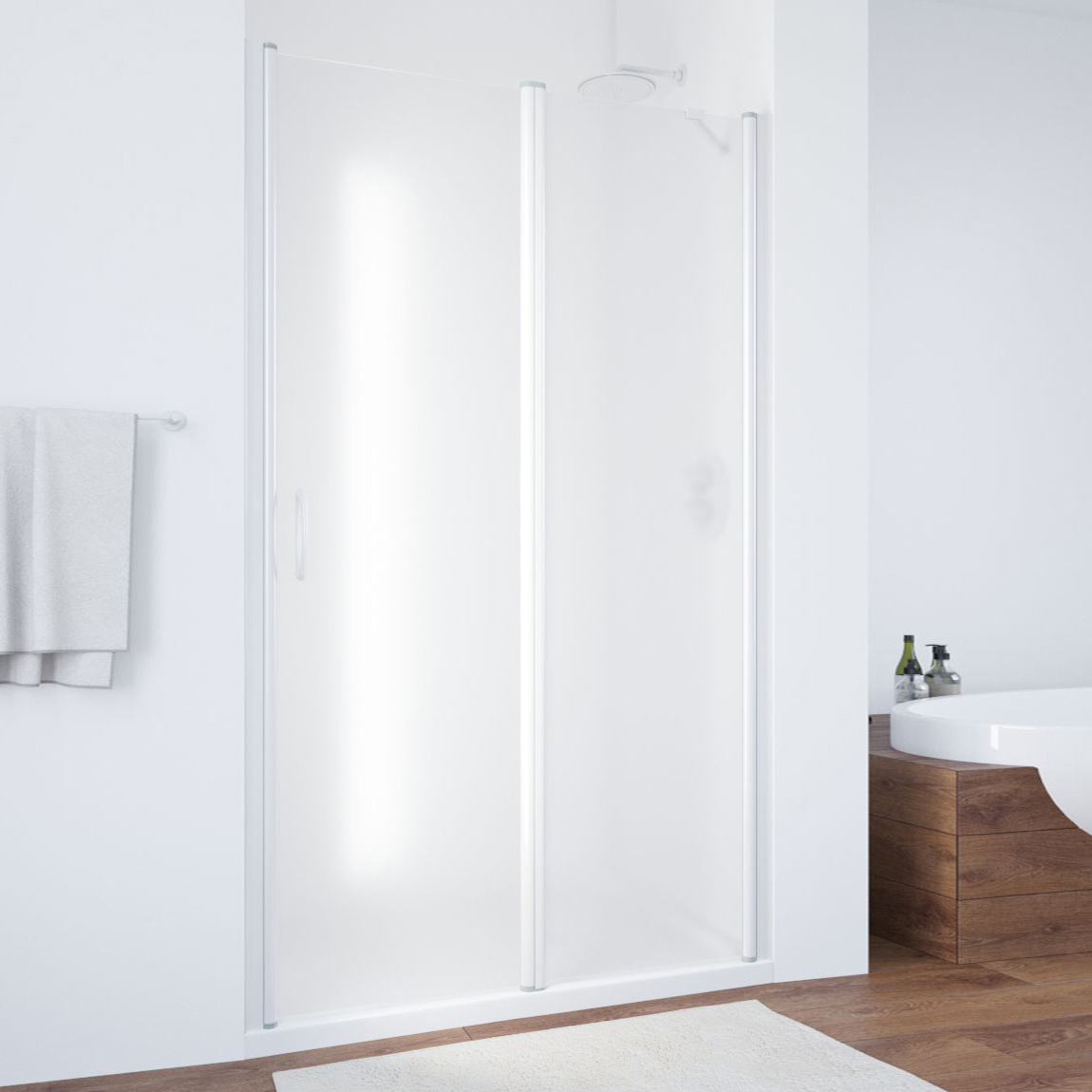 Душевые двери могут быть изготовлены из пластика или закаленного стекла.
