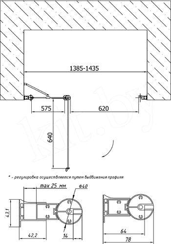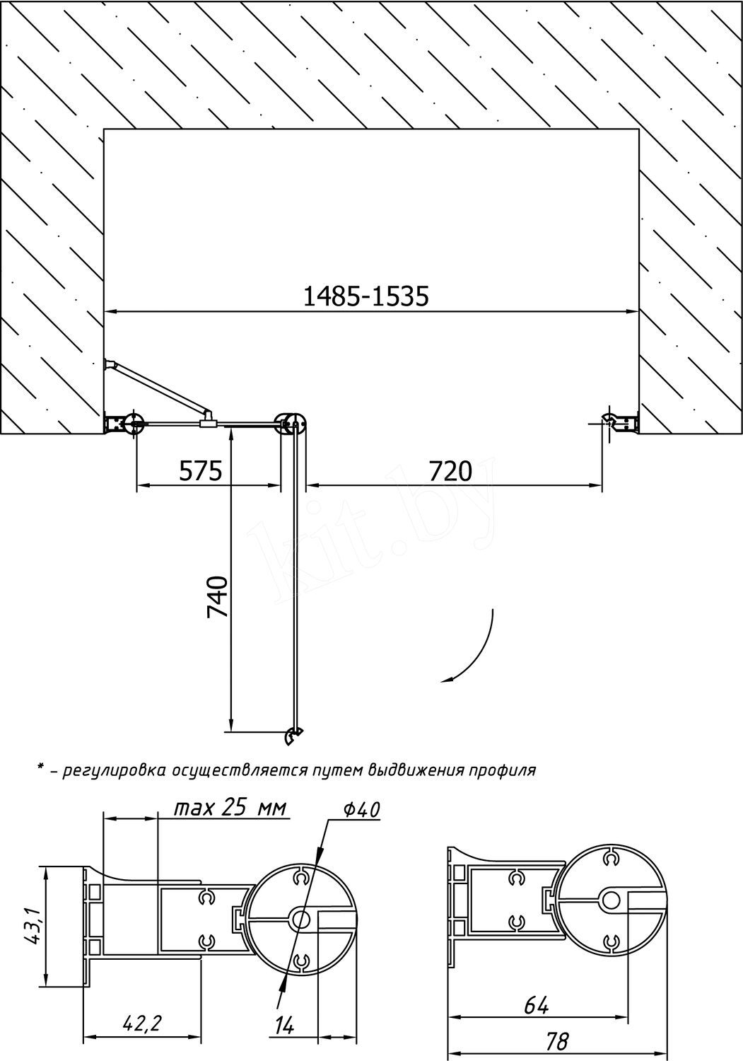 Раздвижные двери перемещаются на роликах вдоль фиксированной части, открываясь по принципу шкафа купе.