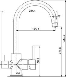 - Высота 343.3 мм (от выхода излива: 223.8 мм)