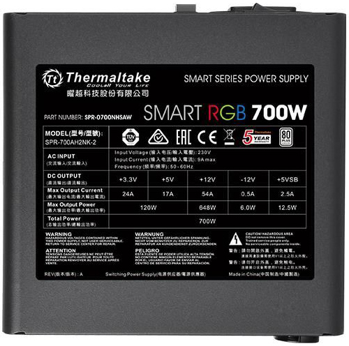 Блок питания Thermaltake Smart RGB 700W (SPR-0700NHSAW)