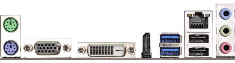 - Разъемы на задней панели I/O PS/2; Jack 3.5; RJ-45; DVI-D; USB 3.2; USB 2.0; HDMI; VGA