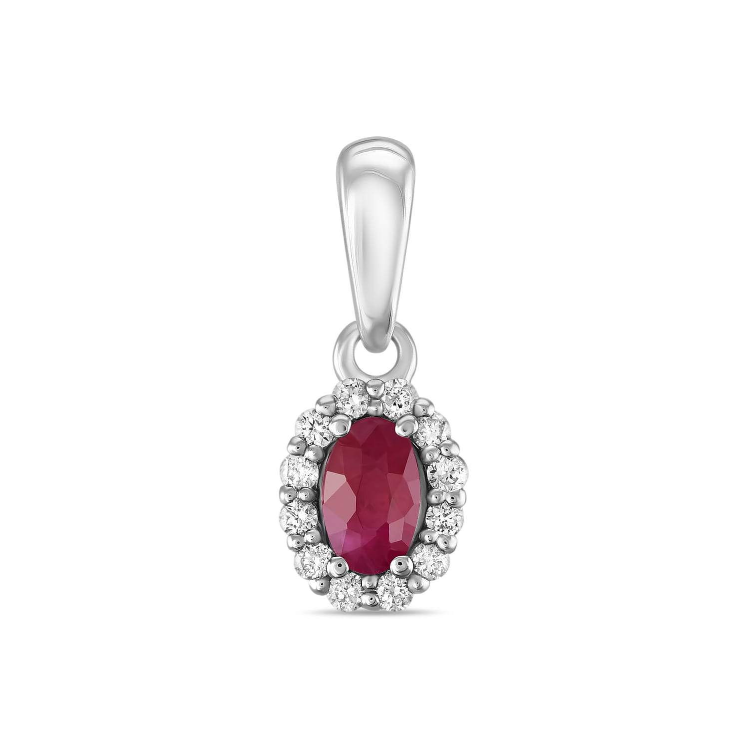 Подвеска из золота 585 пробы. Характеристики вставок: 12 Бриллиантов огранки "Круглая" граней - 57, тип огранки A, цвет 3, чистота 6, 0.1 карат; 1 Рубин огранки "Овал", цвет 3, чистота 3, 0.28 карат; Украшение станет особенным подарком для Вас и Ваших близких. Поставляется в фирменной подарочной упаковке.