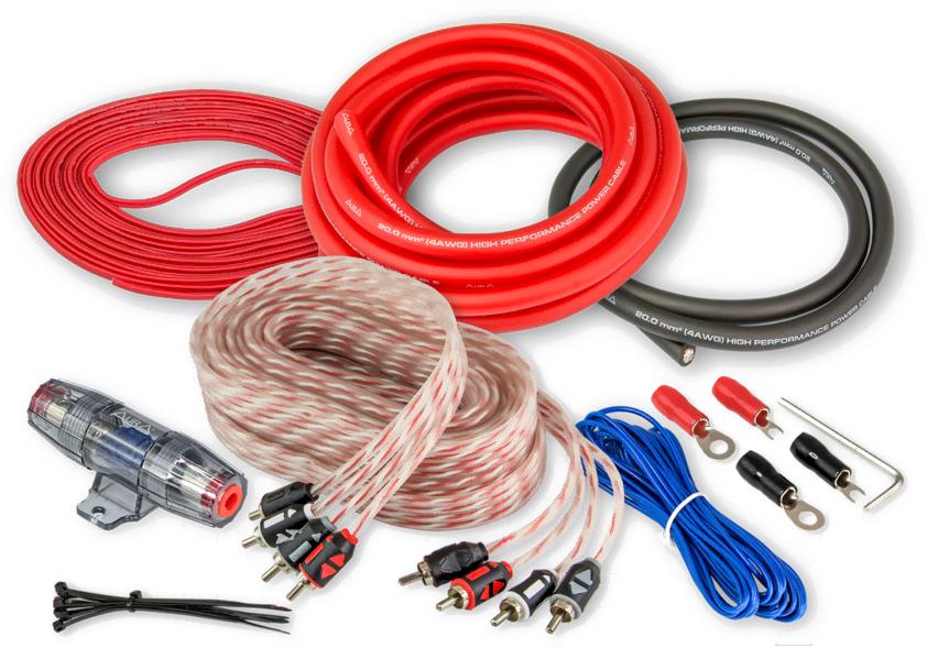 - В комплекте силовой кабель, клемма, акустический кабель, колба, RCA-кабель, провод «Remote», шестигранник, стяжка