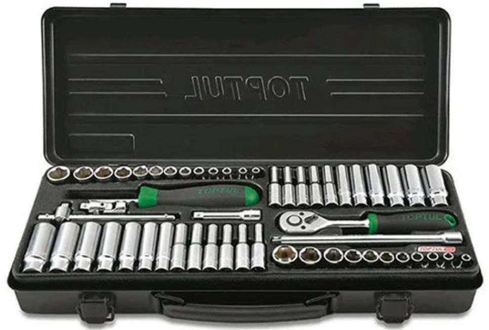 - Комплектация набора воротком з шарніром, подовжувач, торцеві головки, тріскачка, тримач для біт