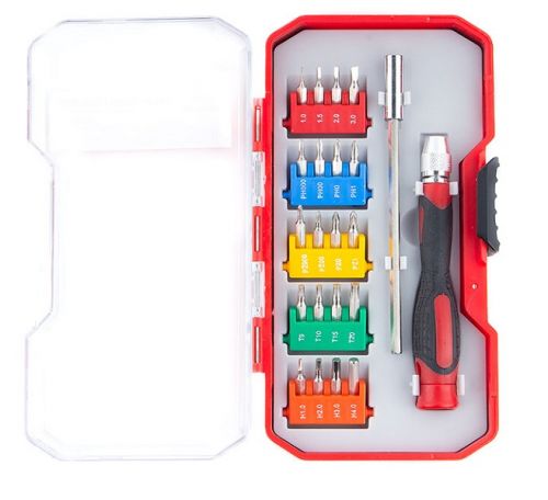 - Комплектация Отвёртка для сменных бит с поворотной шайбой, удлинитель, 120 мм, биты (25 мм/20 шт.), кейс