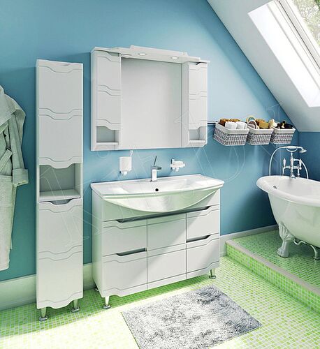 - Тип Мебель для ванной комнаты характеризуется большим разнообразием, позволяя выбирать подходящие варианты как для небольших, так и для просторных помещений. Наиболее распространенными типами мебели являются: • тумба с раковиной: предполагает использование данного типа мебели вместе с керамической чашей. Большинство тумб, представленных на нашем сайте, имеет два варианта комплектации на выбор – с раковиной или без нее. Однако некоторые модели реализуются исключительно с раковиной; • шкаф-пенал: чаще всего имеет узкую и длинную форму, что позволяет устанавливать его даже в небольших помещениях. Компактность этого типа мебели прекрасно сочетается с высокой функциональностью. Шкаф-пенал отлично подходит для хранения полотенец, косметики и других необходимых ванных принадлежностей. Этот тип мебели может устанавливаться на пол или крепиться к стене; • навесной шкаф: небольшой, но вместительный элемент мебели, который монтируется на стену с помощью специальных крепежей. Шкаф может оснащаться распашными или откидными вверх/вниз дверцами, а также выдвижными ящиками. Настенный монтаж позволяет устанавливать навесной шкаф в небольших ванных комнатах; • комод: представляет собой тумбу, оснащенную столешницей и выдвижными ящиками. Этот тип мебели характеризуется повышенной эргономикой использования и вместительностью. Комод чаще всего устанавливается в помещении, которое располагает свободными квадратными метрами. Тип шкаф-пенал