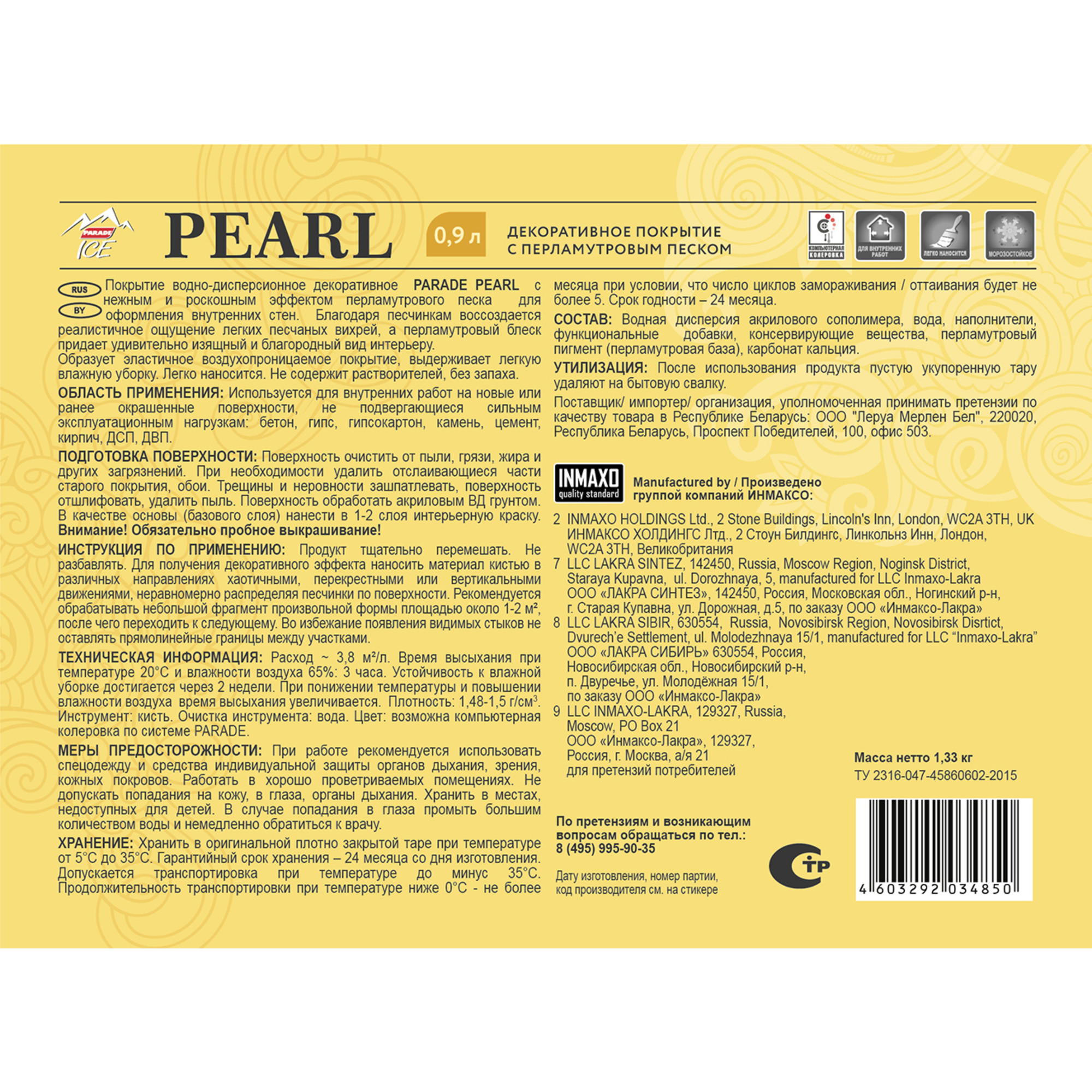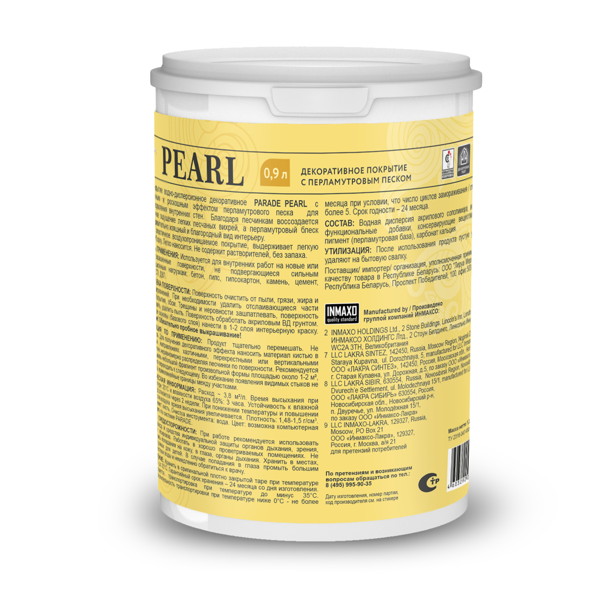 Декоративное покрытие Parade Ice Pearl с эффектом перламутрового песка 0.9 л