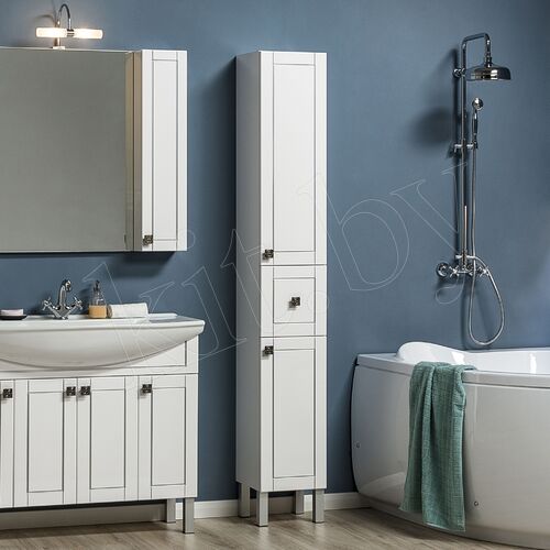 • шкаф-пенал: чаще всего имеет узкую и длинную форму, что позволяет устанавливать его даже в небольших помещениях. Компактность этого типа мебели прекрасно сочетается с высокой функциональностью. Шкаф-пенал отлично подходит для хранения полотенец, косметики и других необходимых ванных принадлежностей. Этот тип мебели может устанавливаться на пол или крепиться к стене;