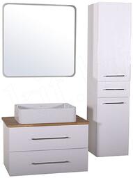 • навесной шкаф: небольшой, но вместительный элемент мебели, который монтируется на стену с помощью специальных крепежей. Шкаф может оснащаться распашными или откидными вверх/вниз дверцами, а также выдвижными ящиками. Настенный монтаж позволяет устанавливать навесной шкаф в небольших ванных комнатах;
