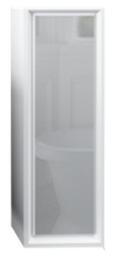 Стеклянный корпус может быть изготовлен из прозрачного или матового стекла. Это наиболее водостойкий материал, так как ни пар, ни большое количество воды не могут его повредить. Мебель из стекла очень гигиенична, за ней легко ухаживать и поддерживать в чистоте. Недостаток: сильный удар может ее повредить.