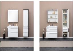 • навесной шкаф: небольшой, но вместительный элемент мебели, который монтируется на стену с помощью специальных крепежей. Шкаф может оснащаться распашными или откидными вверх/вниз дверцами, а также выдвижными ящиками. Настенный монтаж позволяет устанавливать навесной шкаф в небольших ванных комнатах;