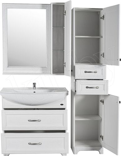 • навесной шкаф: небольшой, но вместительный элемент мебели, который монтируется на стену с помощью специальных крепежей. Шкаф может оснащаться распашными или откидными вверх/вниз дверцами, а также выдвижными ящиками. Настенный монтаж позволяет устанавливать навесной шкаф в небольших ванных комнатах;