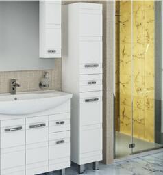 • шкаф-пенал: чаще всего имеет узкую и длинную форму, что позволяет устанавливать его даже в небольших помещениях. Компактность этого типа мебели прекрасно сочетается с высокой функциональностью. Шкаф-пенал отлично подходит для хранения полотенец, косметики и других необходимых ванных принадлежностей. Этот тип мебели может устанавливаться на пол или крепиться к стене;