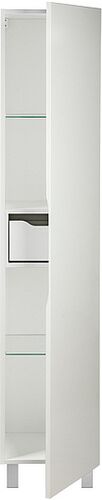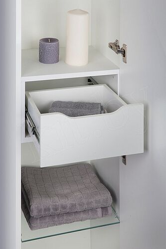 • шкаф-пенал: чаще всего имеет узкую и длинную форму, что позволяет устанавливать его даже в небольших помещениях. Компактность этого типа мебели прекрасно сочетается с высокой функциональностью. Шкаф-пенал отлично подходит для хранения полотенец, косметики и других необходимых ванных принадлежностей. Этот тип мебели может устанавливаться на пол или крепиться к стене;