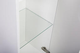 Стеклянный корпус может быть изготовлен из прозрачного или матового стекла. Это наиболее водостойкий материал, так как ни пар, ни большое количество воды не могут его повредить. Мебель из стекла очень гигиенична, за ней легко ухаживать и поддерживать в чистоте. Недостаток: сильный удар может ее повредить.
