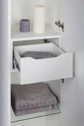 • навесной шкаф: небольшой, но вместительный элемент мебели, который монтируется на стену с помощью специальных крепежей. Шкаф может оснащаться распашными или откидными вверх/вниз дверцами, а также выдвижными ящиками. Настенный монтаж позволяет устанавливать навесной шкаф в небольших ванных комнатах;