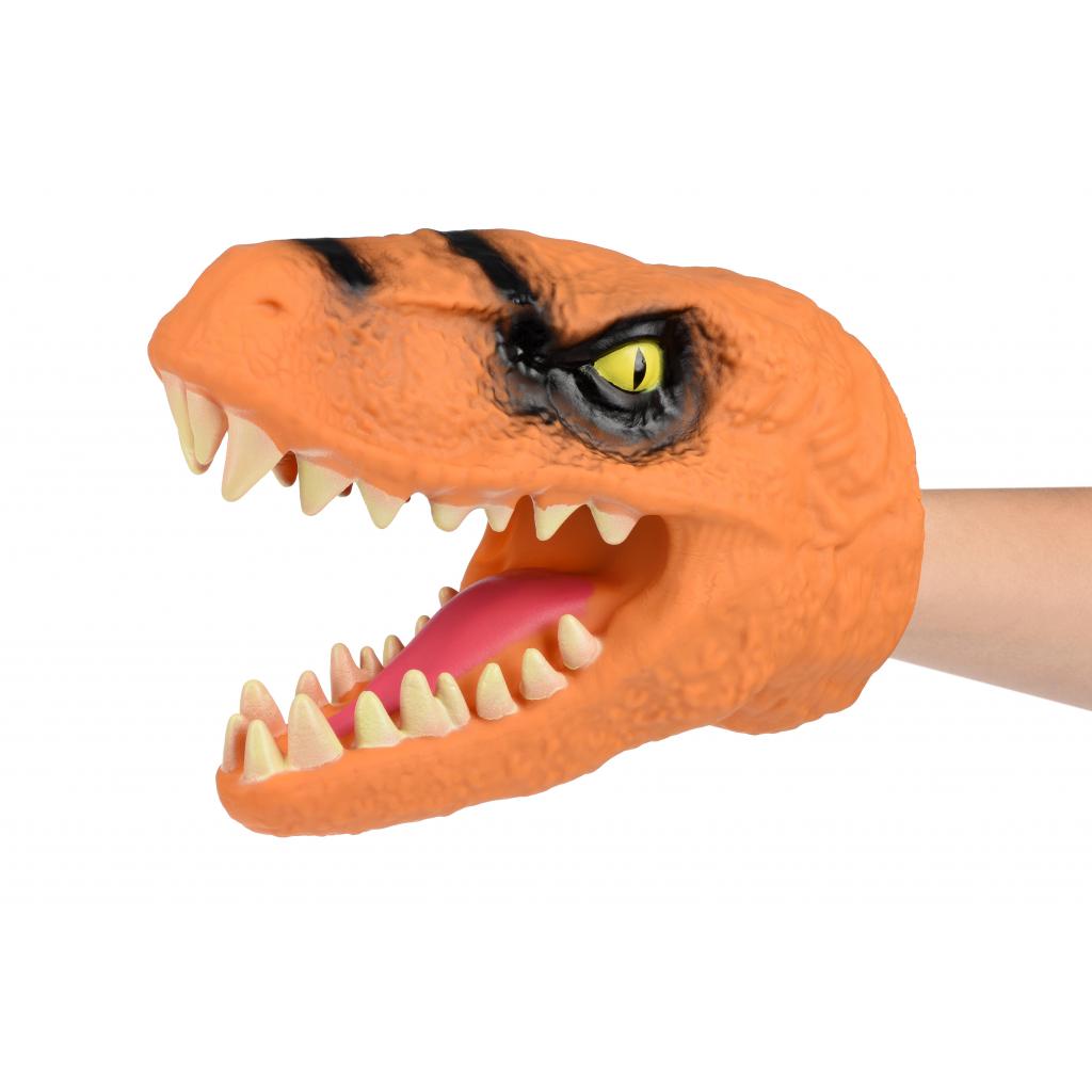 Оранжевий динозавр - оригінальна іграшка на руку. Динозавр можна одягнути на руку, як іграшку для лялькового театру, і відтворити з ним численні сюжети: зімітувати жести, рухи, емоції. На відміну від традиційних ляльок на руку, що часто виготовляються з м’якого матеріалу, ця іграшка виготовлена з вінілу. Динозавр помаранчевого кольору, розміром 25х15 см. Отвір для руки достатньо широкий, ляльку зручно тримати і гратися: відтворювати різні жести, емоції, рухи. Для дітей від 4 років.