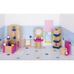 Яскравий набір меблів для ванної кімнати від німецького виробника іграшок goki. Набір відрізняється різноманіттям деталей, особливо дрібних, які будуть чудово розвивати моторику рук. «Меблі для ванної кімнати» зроблять гру більш реалістичною, розширять світогляд дівчат, познайомлять із предметами побуту, привчать до хазяйновитості. Дівчата зможуть проявити свою творчість, розставляючи: душову кабіну, ванну, раковину із дзеркалом, туалет, сушарку та багато дрібних аксесуарів. Німецький бренд goki пропонує також різноманітні набори меблів для вітальні, дитячої, кухні, садові меблі тощо. Для дітей від 3-х років.