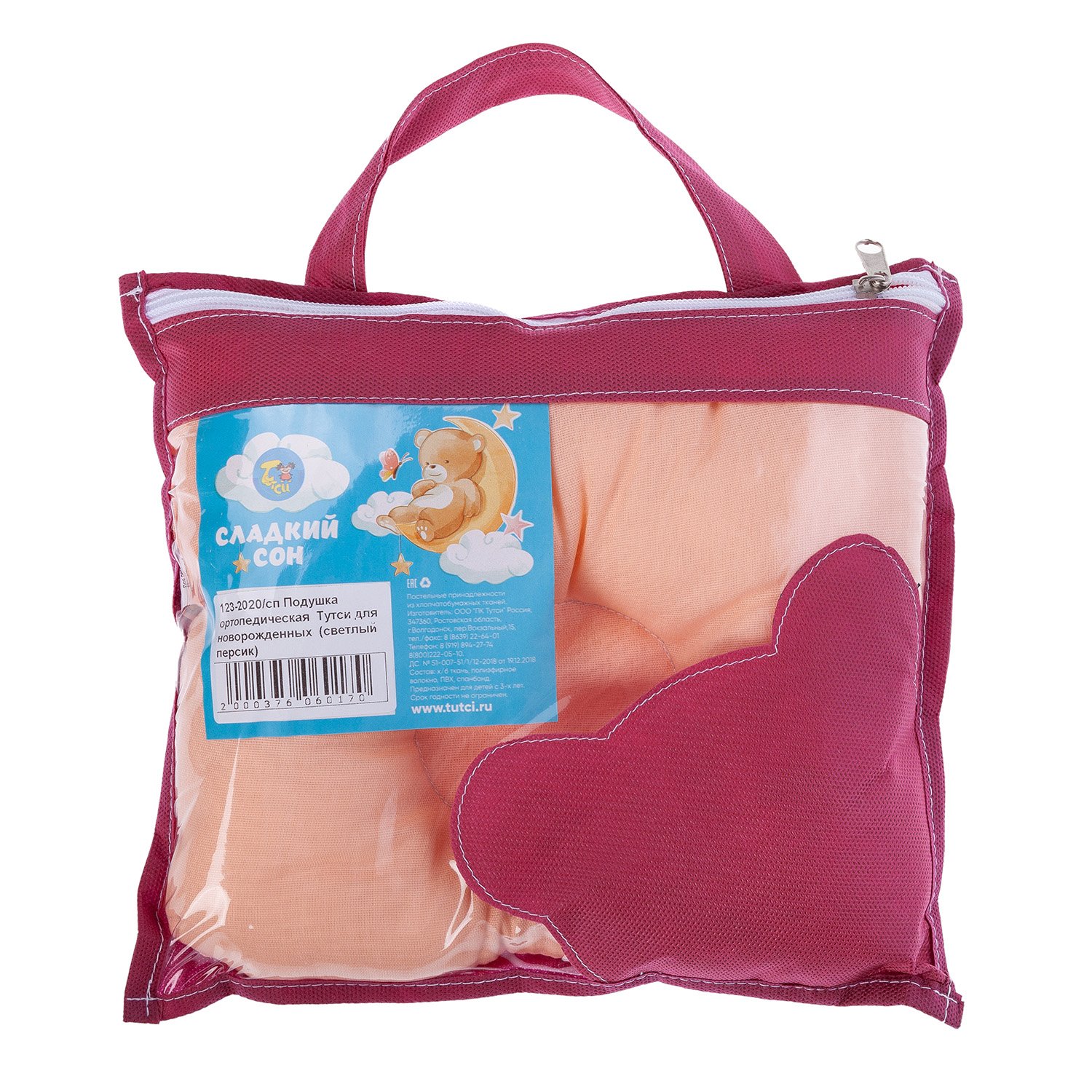 Подушка Тутси ортопедическая для новорожденных светлый персик Тутси 123-2020/сп