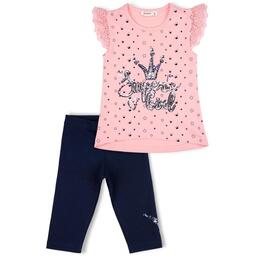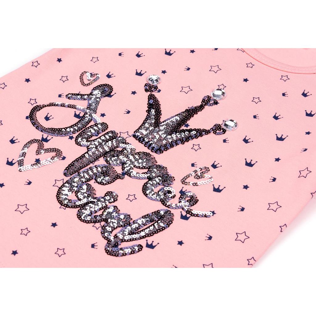 Літній трикотажний комплект з короною із паєток для дівчинки.