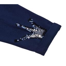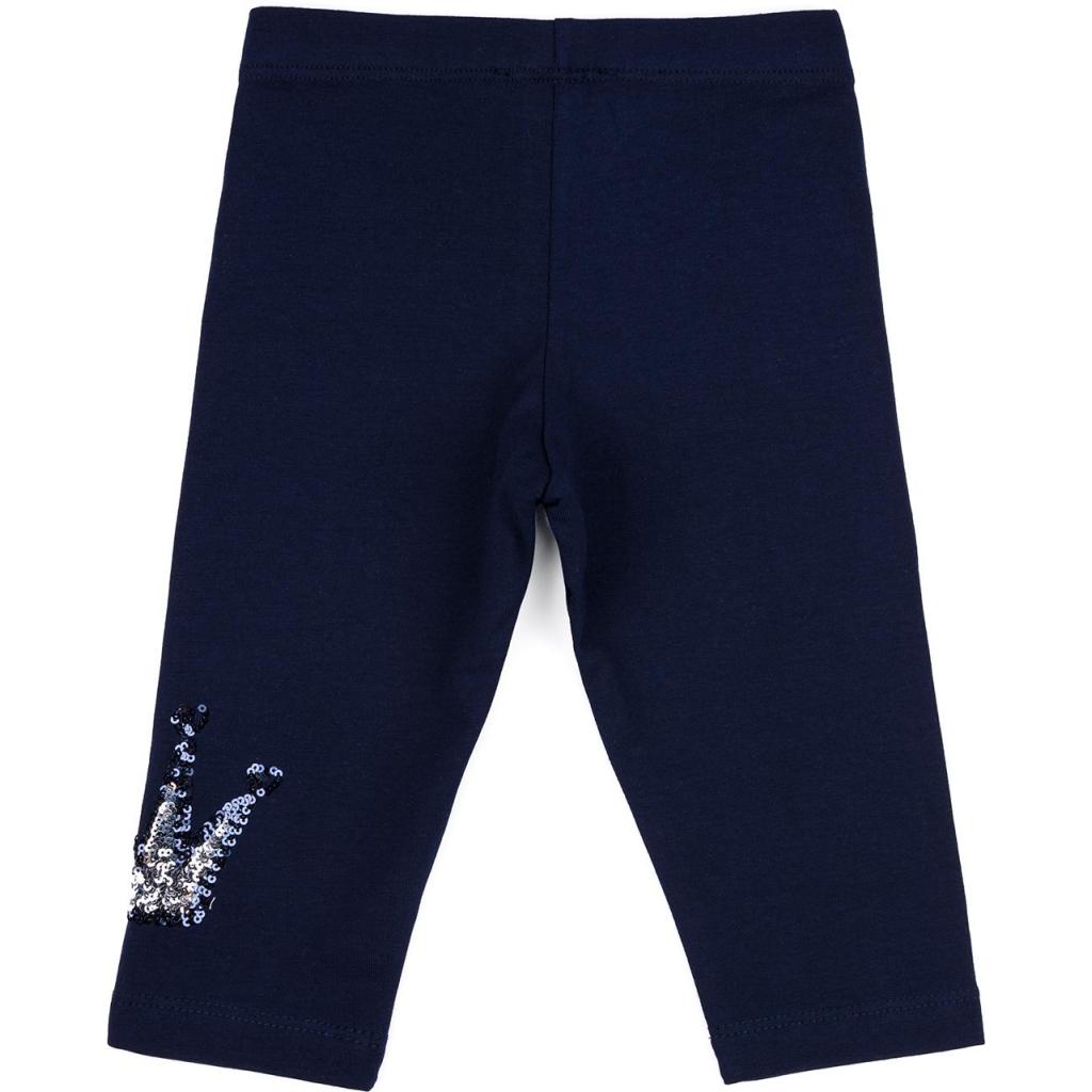 Зручні укорочені лосини з еластичним поясом на резинці, забезпечать оптимальну посадку по фігурі. Низ лівої штанини прикрашений короною з паєток, як на футболці.