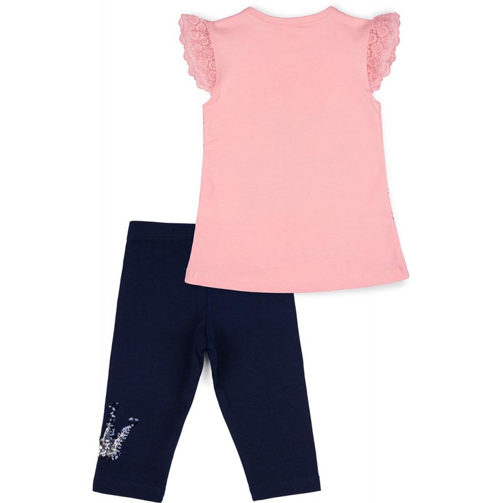 Милий комплект-двійка з тонкого турецького трикотажу для маленької модниці: ніжно-персикова майка і темно-сині лосини-бриджі.