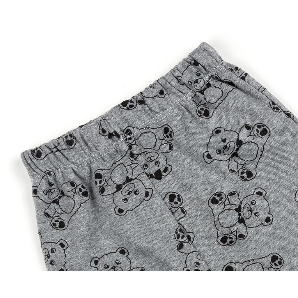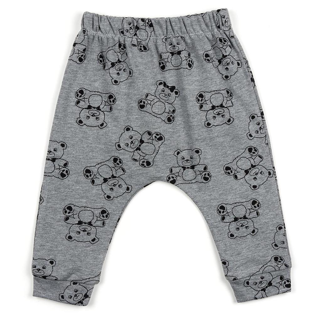 • Штанці сірого меланжевого кольору з фігурками ведмедиків, з низькою посадкою під підгузник, на еластичному поясі з гумкою всередині.