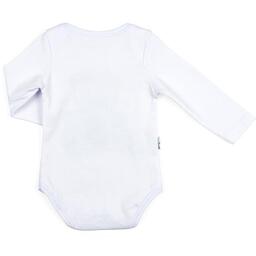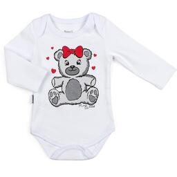 • Боді білого кольору з довгими рукавами з красивим принтом ведмедика, застібка внизу на дві кнопочки, плечики, які самі розкриваються, що дуже зручно при надяганні боді.