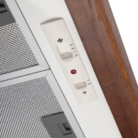 Витяжка кухонна PYRAMIDA KH 60 wood white NUT призначена для функціонування як в режимі відведення повітря, так і в режимі його рециркуляції. У першому випадку потрібне підключення до вентиляційної мережі, а в другому - установка додаткового вугільного фільтра. Потужний двигун (80 Вт) працює з гранично низьким рівнем шуму і дозволяє задіяти один з 3-х швидкісних режимів роботи. Максимальна продуктивність витяжки 700 м3 / ч.