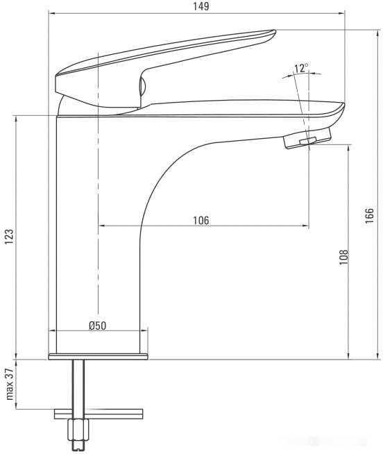 Смеситель для умывальника, однорычажный, запорный механизм керамический картридж, излив: фиксированный, монтаж на поверхность сантехники, кол-во монтажных отверстий 1, материал корпуса латунь.