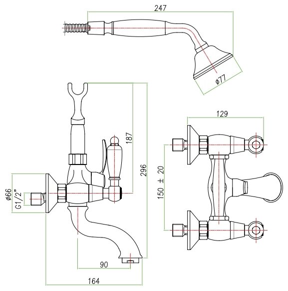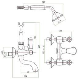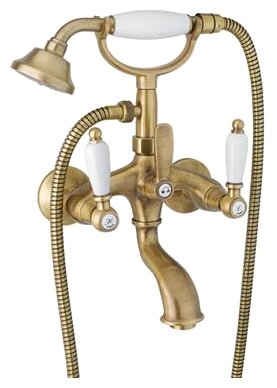 Смеситель для ванны/душа, двухвентильный, излив: поворотный, монтаж настенный, кол-во монтажных отверстий 2, материал корпуса латунь.