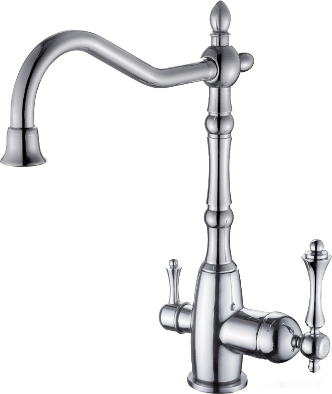 Смеситель для кухни, однорычажный, запорный механизм керамический картридж, излив: поворотный, монтаж на поверхность сантехники, кол-во монтажных отверстий 1, материал корпуса латунь, вывод для питьевой воды.