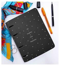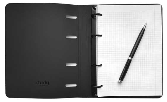 Тетрадь Infolio Study А5 формата (175х212 мм) на кольцевом механизме. Гибкая обложка из искусственной кожи с печатью и черным дизайнерским картоном с внутренней стороны имеет скругленные уголки. Сменный внутренний блок в клетку на 120 листов (240 страниц) - из высококачественной белой бумаги плотностью 65 г/м2 с прямыми уголками.