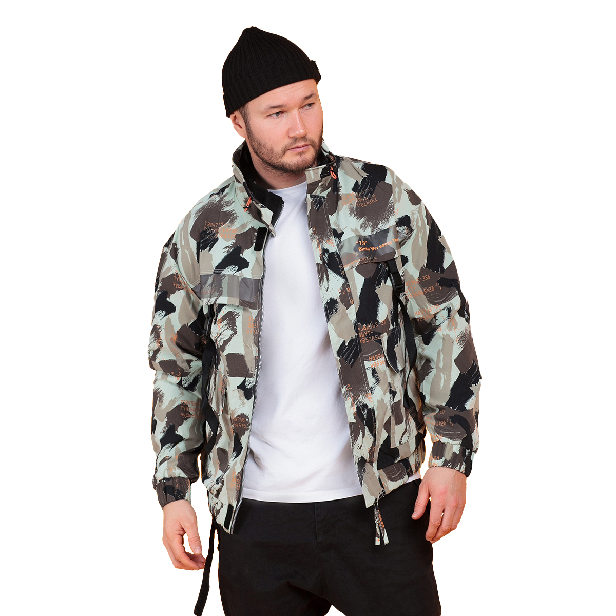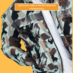 Мужская куртка с принтом милитари выполнена из качественного полиэстера. Данная модель имеет шесть передних карманов, манжеты, отделка воротника молнией, яркую нашивку с лого на спине. Стильная демисезонная куртка для прохладной погоды обеспечит защиту от неприятных погодных условий. Если вы еще не определились с весенним и осенним гардеробом верхней одежды, то эта куртка именно для вас.