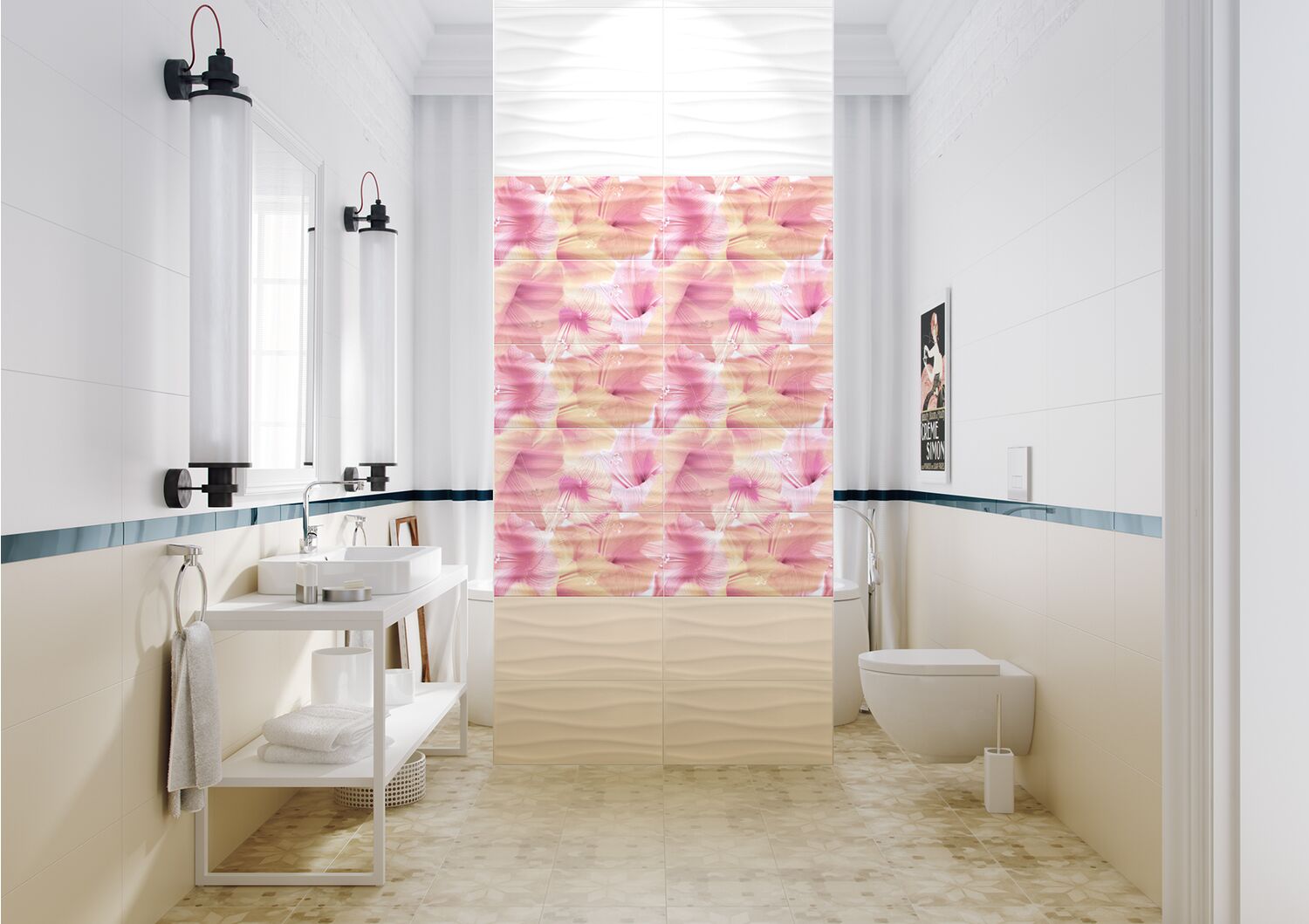 • панно: декоративное изображение, которое состоит как минимум из двух плиток. Применяется для дизайнерского оформления стен;