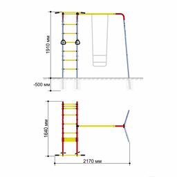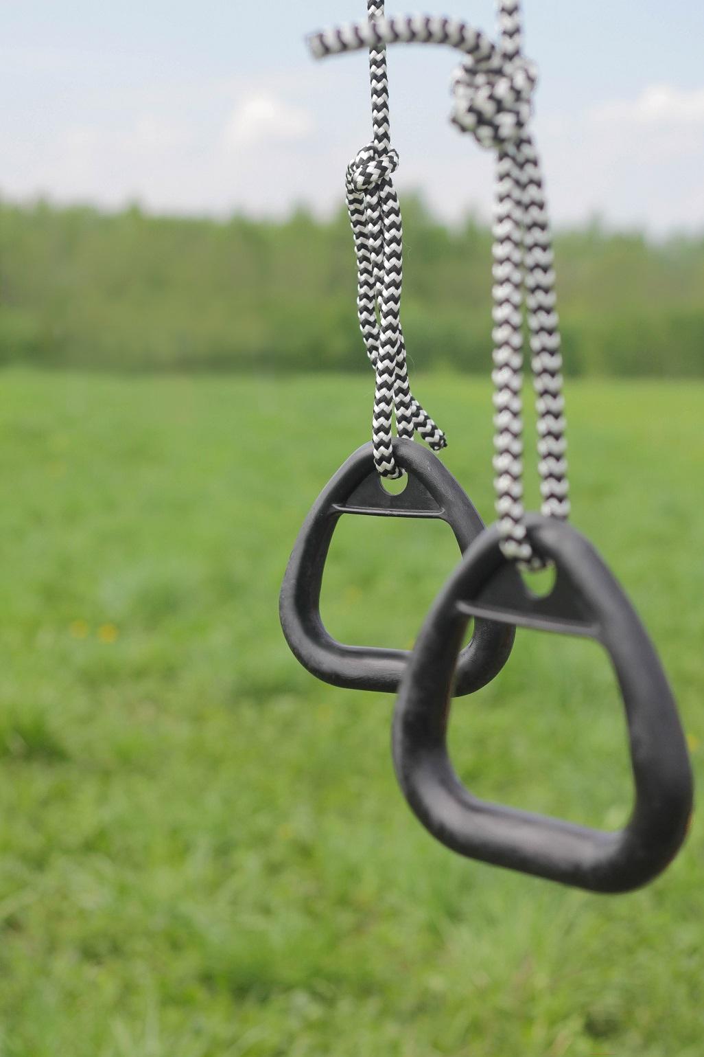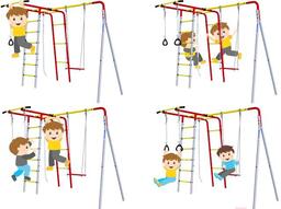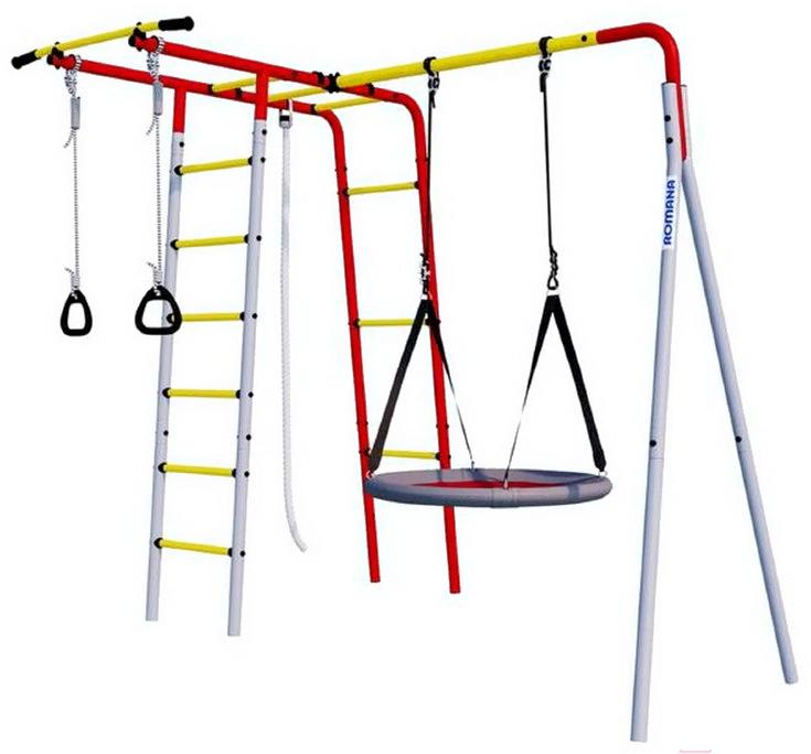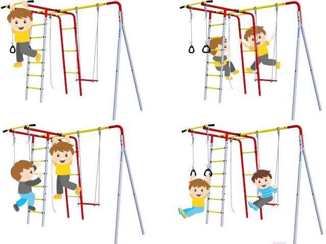 • Элементы в комплекте качели, турник, канат, кольца, лестница, рукоход