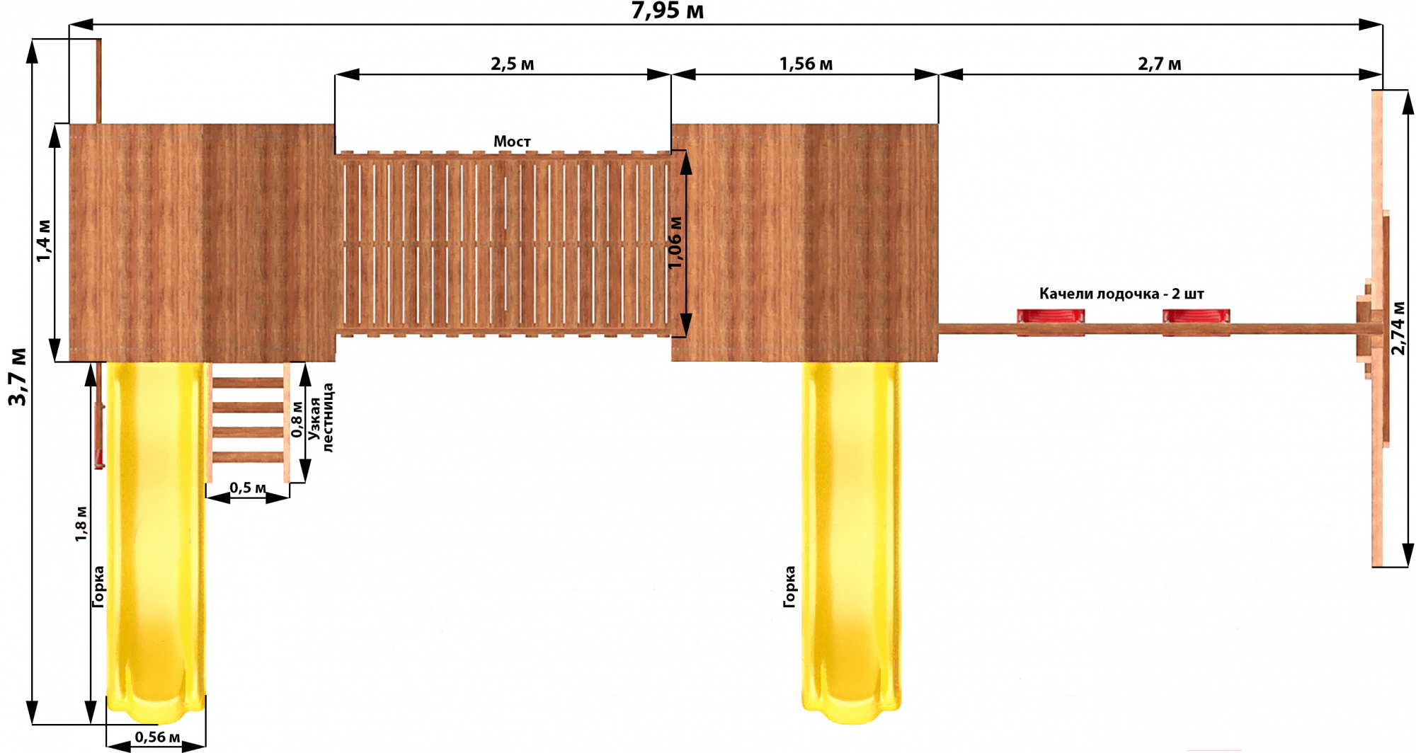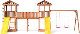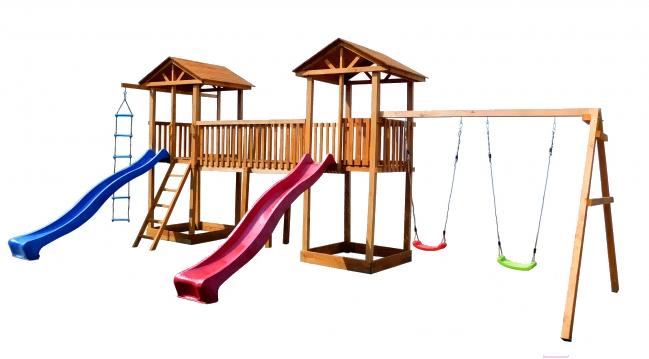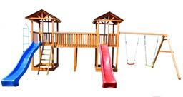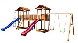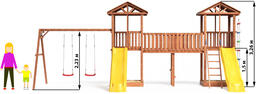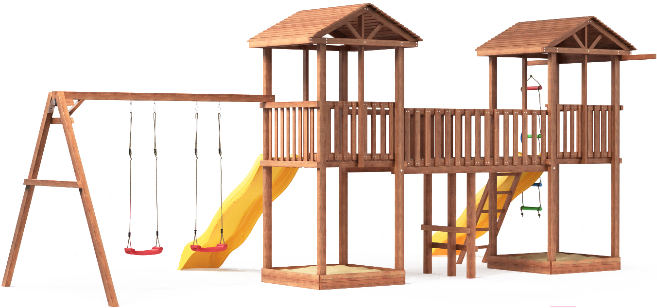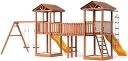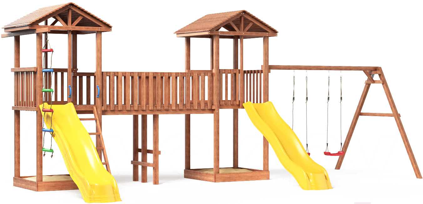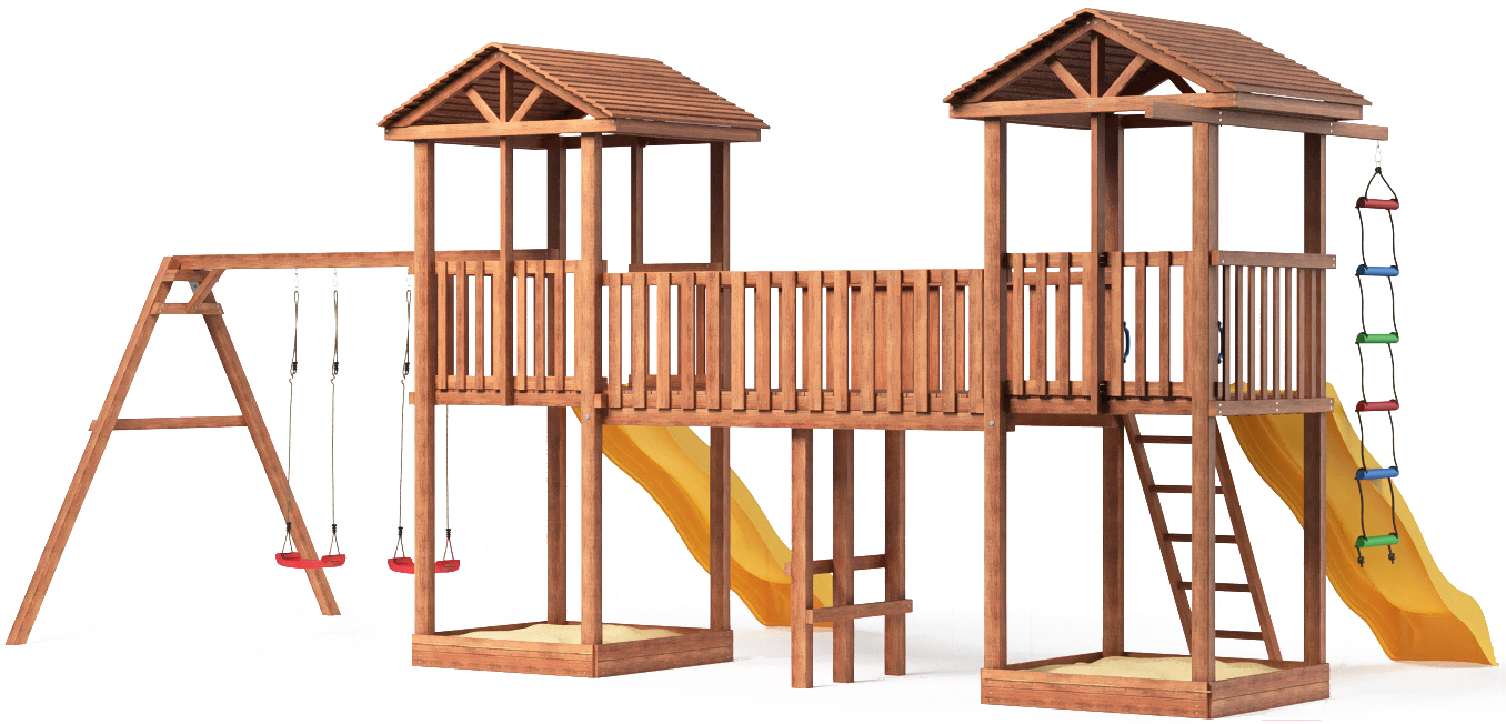 • Элементы комплекса в комплекте горка, качели, веревочная лестница, игровая башня, песочница, лестница