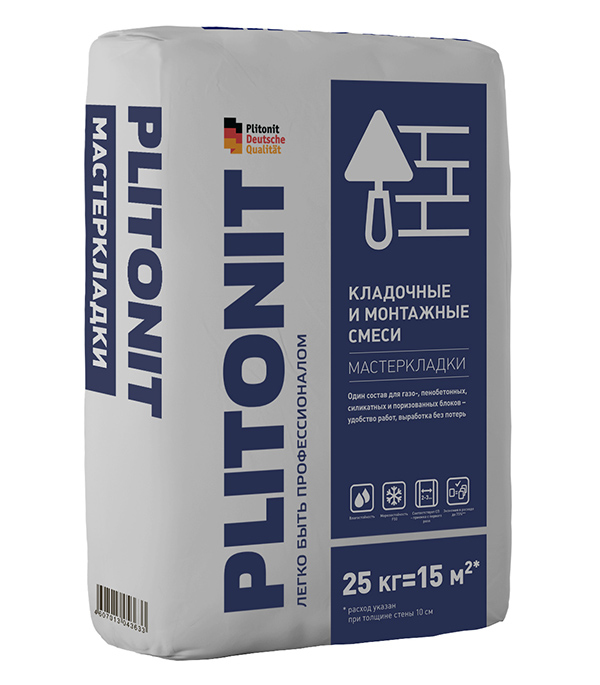 - Количество воды на 25 кг смеси 4,5-5,5 л