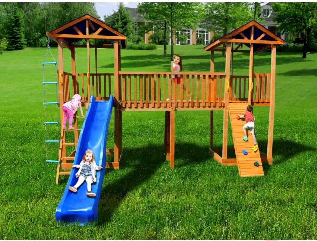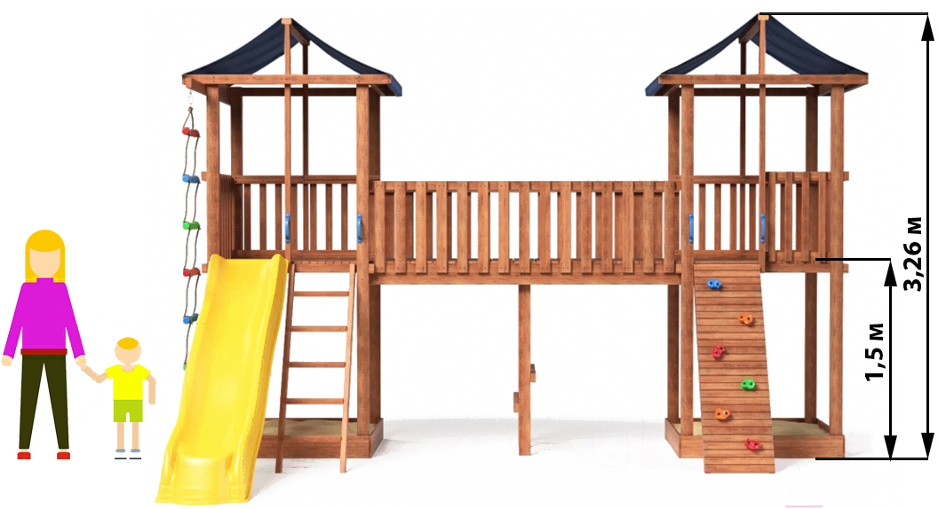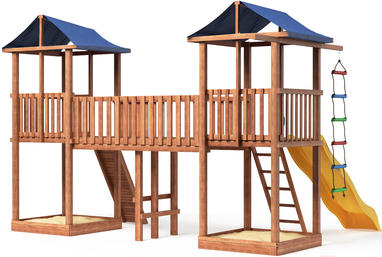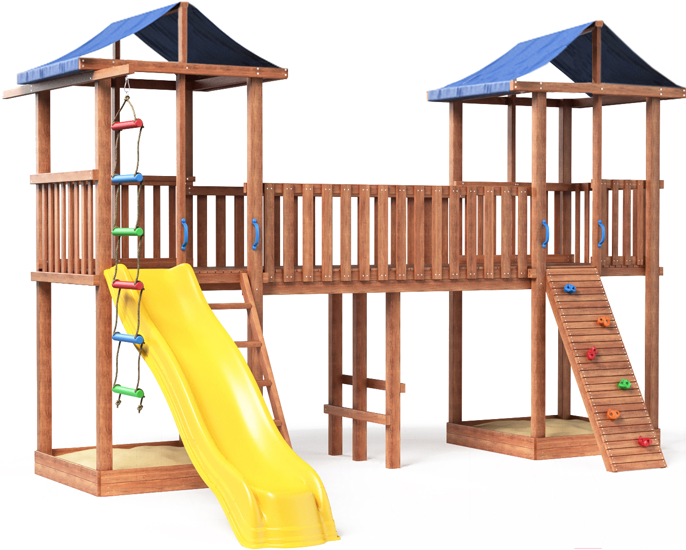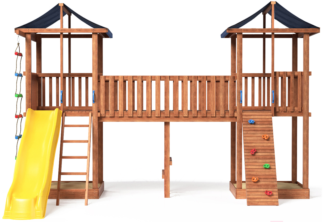 • Элементы комплекса в комплекте горка, стена для лазания, веревочная лестница, игровая башня, песочница, лестница