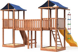 • Элементы в комплекте горка, стена для лазания, веревочная лестница, игровая башня, песочница, лестница