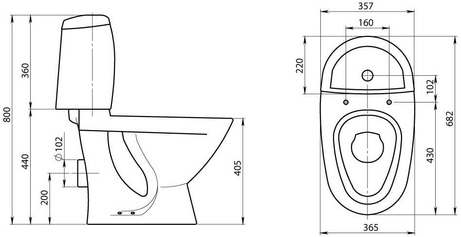 - Расположение сливного бачка Компакт