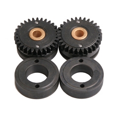 Комплект содержит 2 приводных ролика, 2 прижимных ролика и 2 зубчатых венца