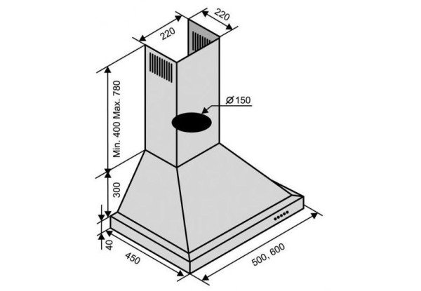 • Диаметр отверстия воздуховода, мм 150