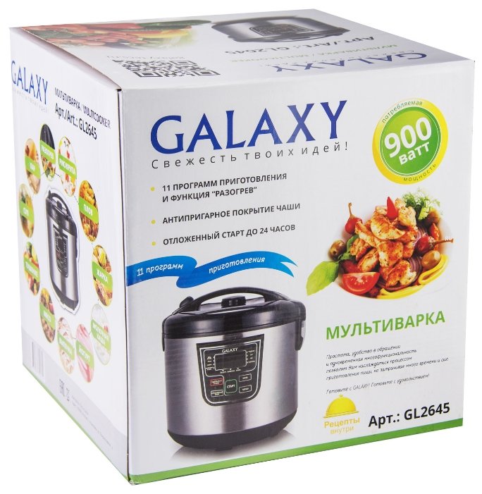 - Программы молочная каша, жарка, приготовление на пару, выпечка, тушение, плов, йогурт, крупа