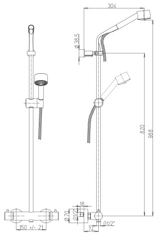 - Длина шланга, см 150