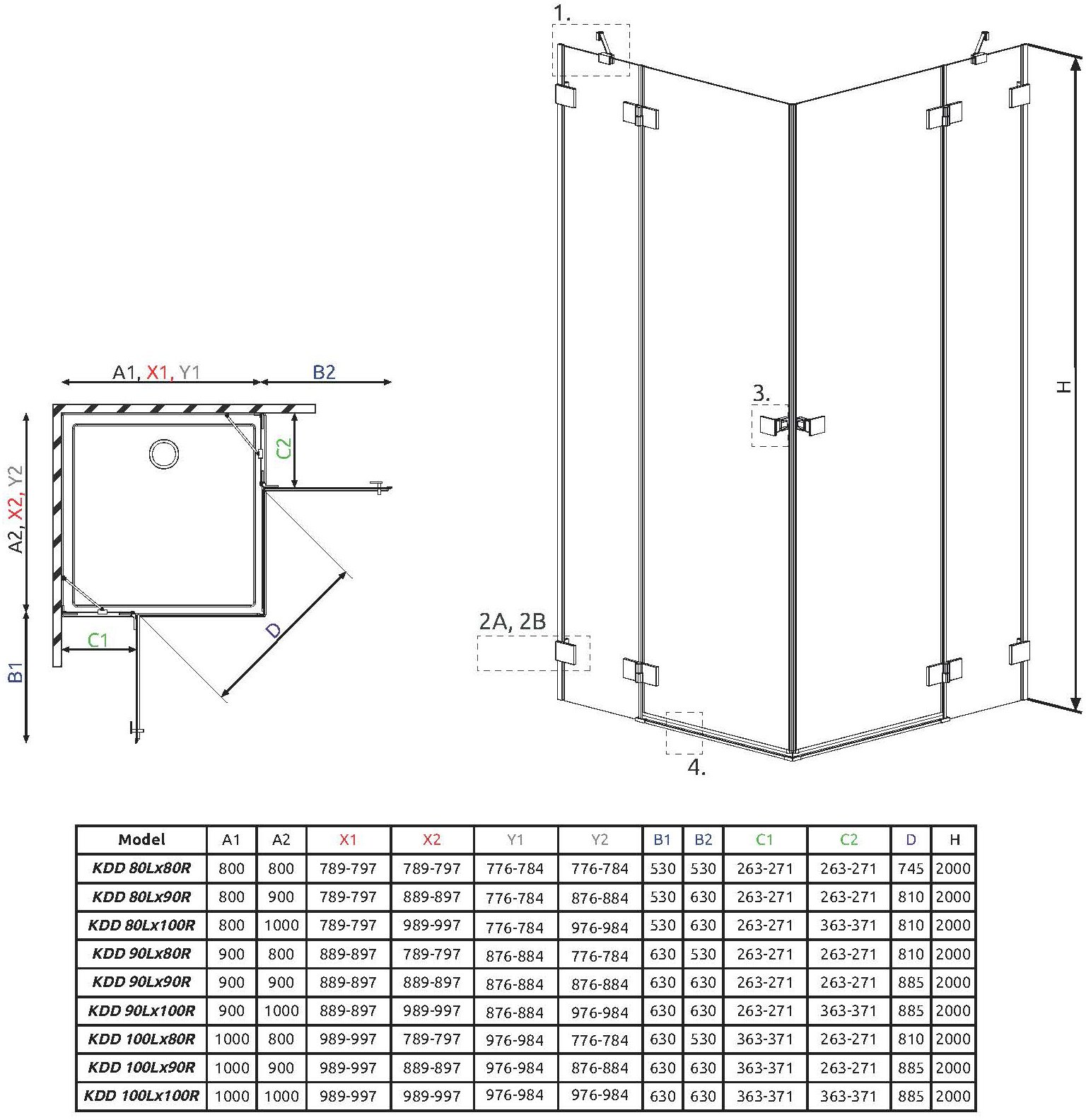Душевой уголок Radaway Essenza Pro KDD 90x100 10096090-01-01-L левая +10096100-01-01-R правая, стекло: прозрачное