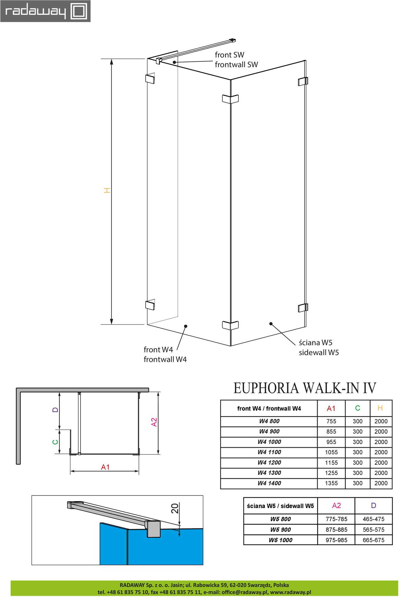 Душевая кабина Radaway Euphoria Walk-in IV 90x90 383141-01-01 + 383151-01-01 + 383160-01-01 - цвет стекла: прозрачное